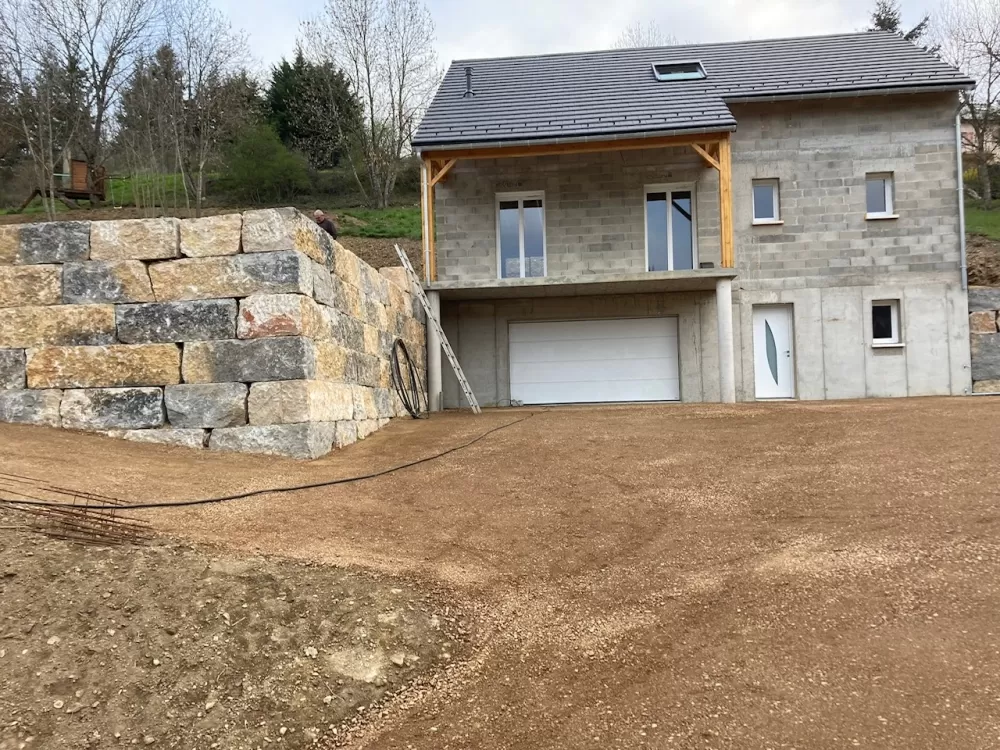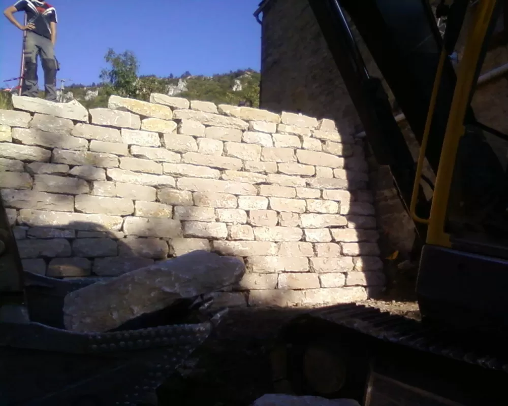 SARL BEAU TP a récemment réalisé la création d'un enrochement pour mur en soutènement à Mende :